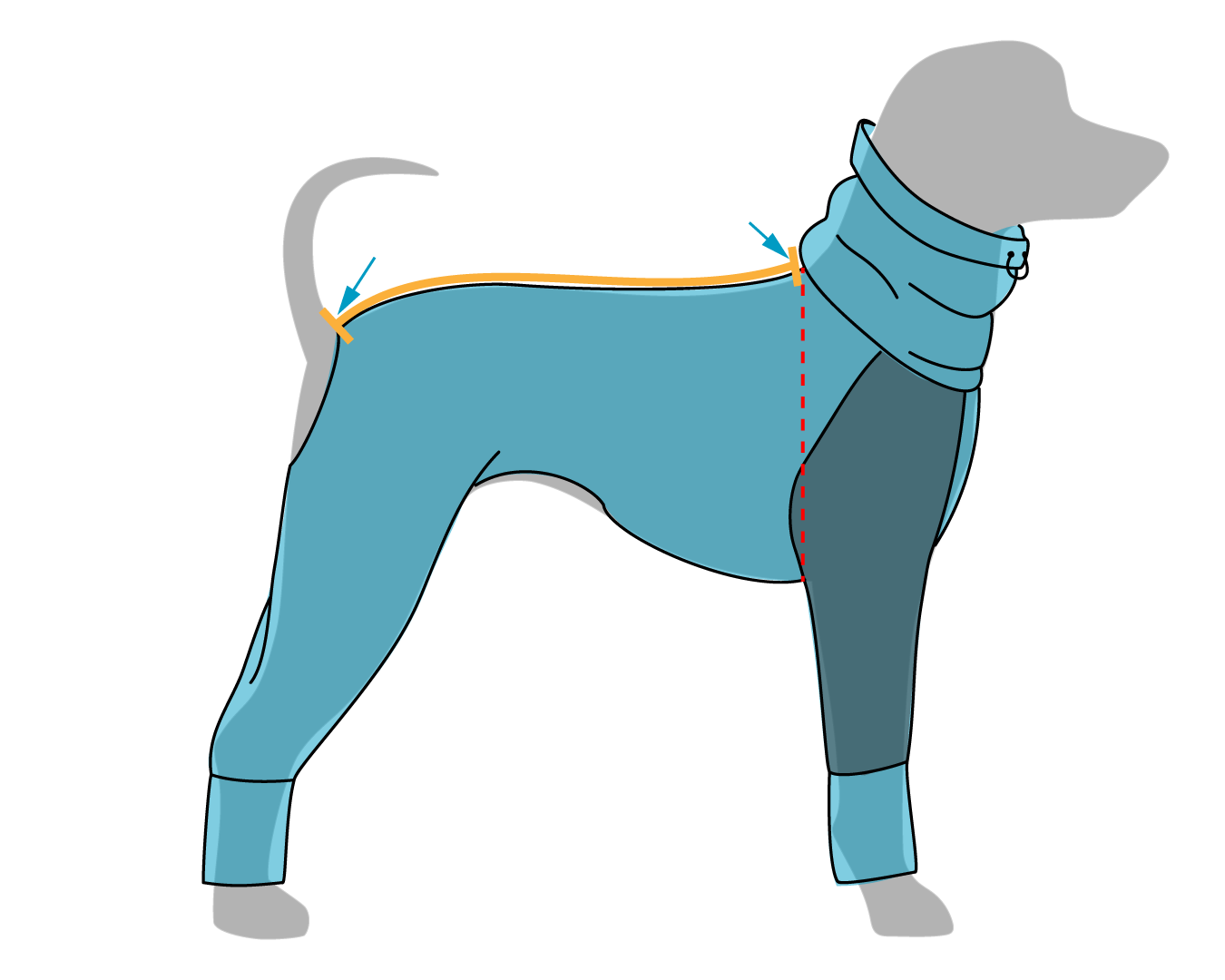 Mesurez de l'avant d'une patte avant, en passant par le dos, jusqu'à l'autre patte avant.