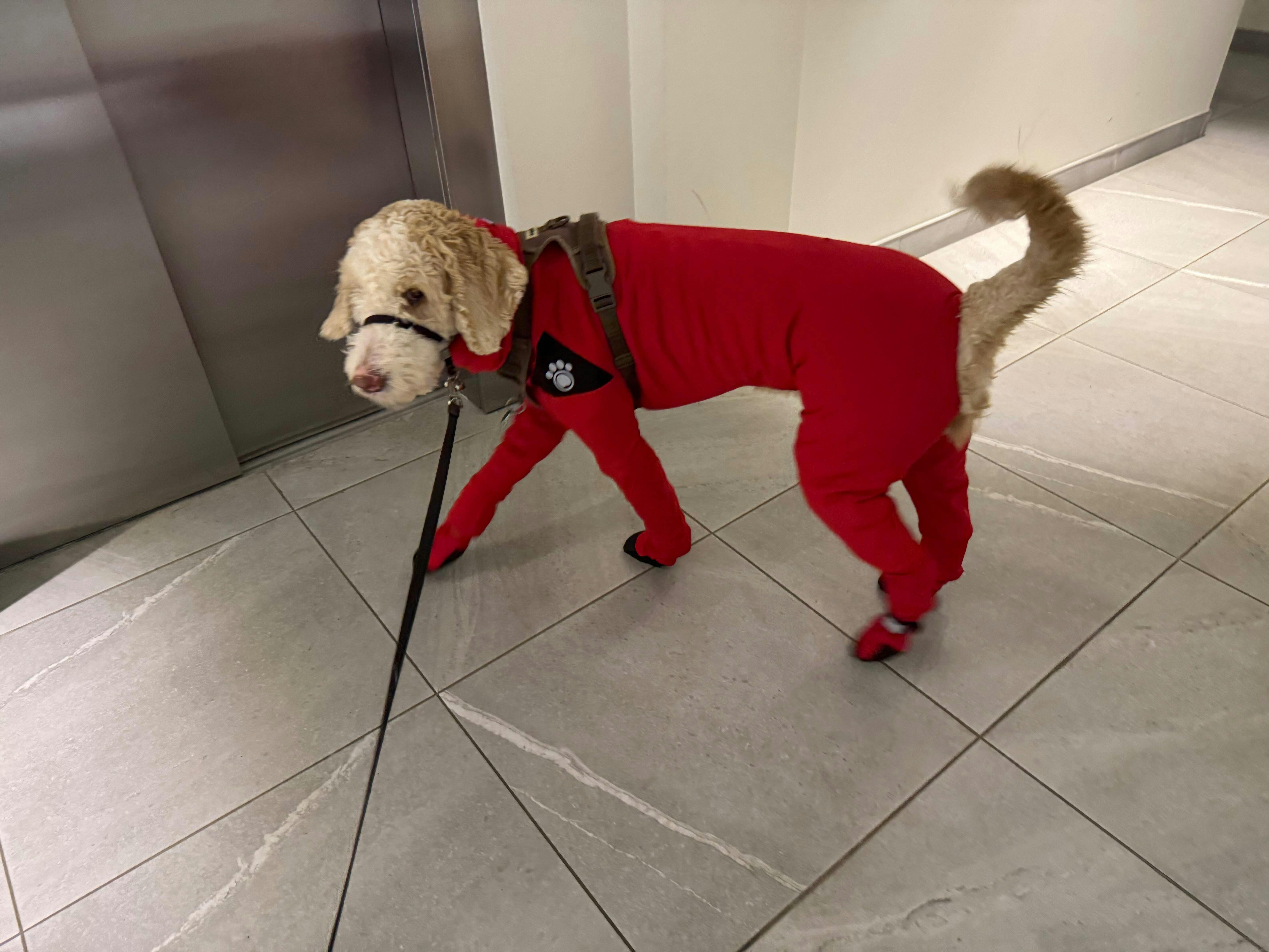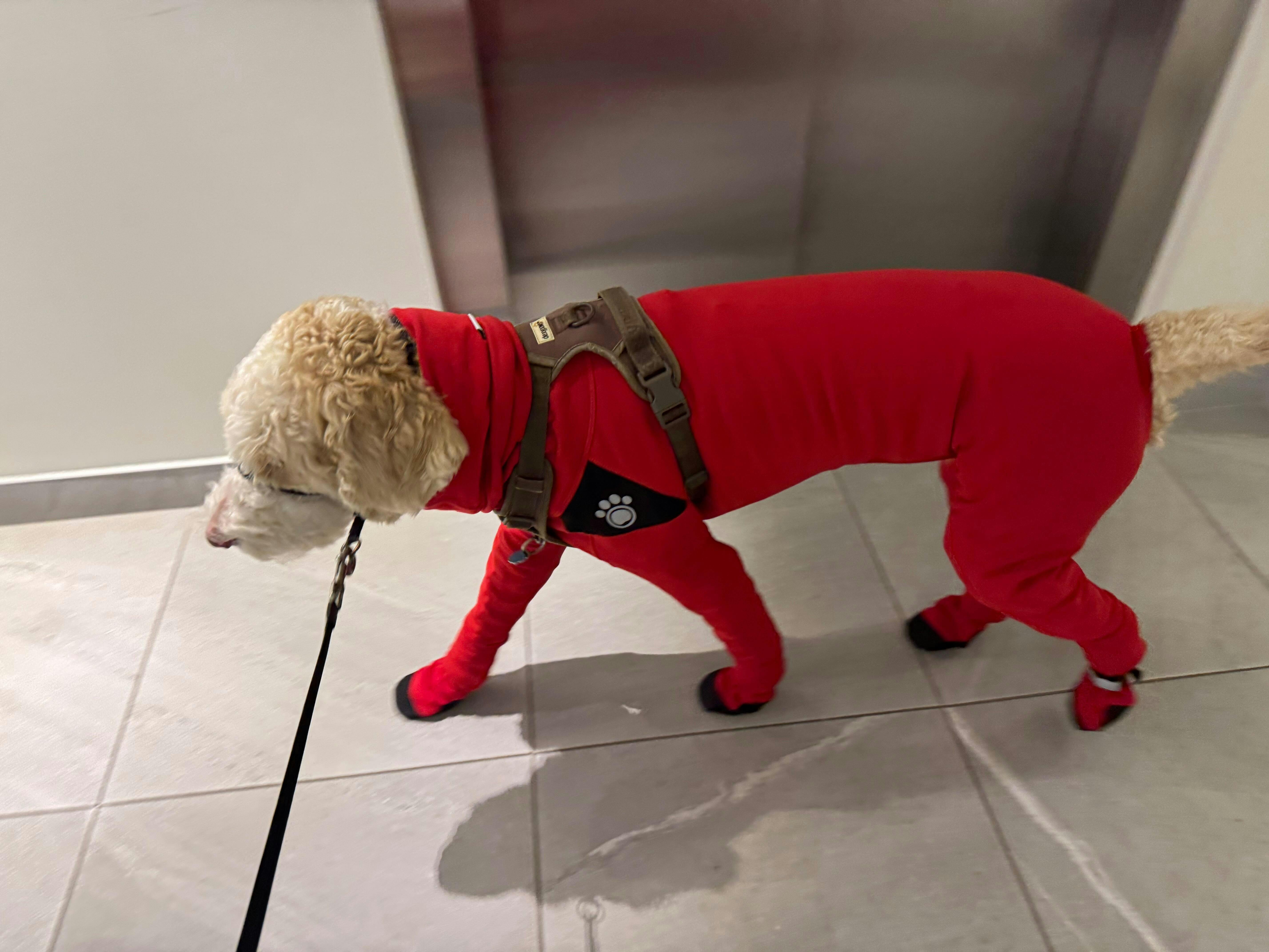 Nous tenons vraiment à ce que votre chien soit bien à l'aise dans son manteau! Si jamais vous pensez que la taille ne lui convient pas tout à fait, n'hésitez pas à communiquer avec nous. On est là pour vous aider!